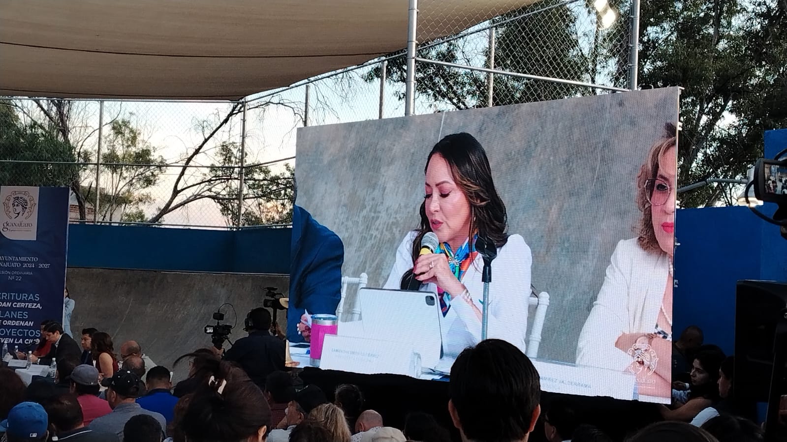 Silao. - La presidenta municipal de Silao, Melanie Murillo junto con la secretaria del Nuevo…