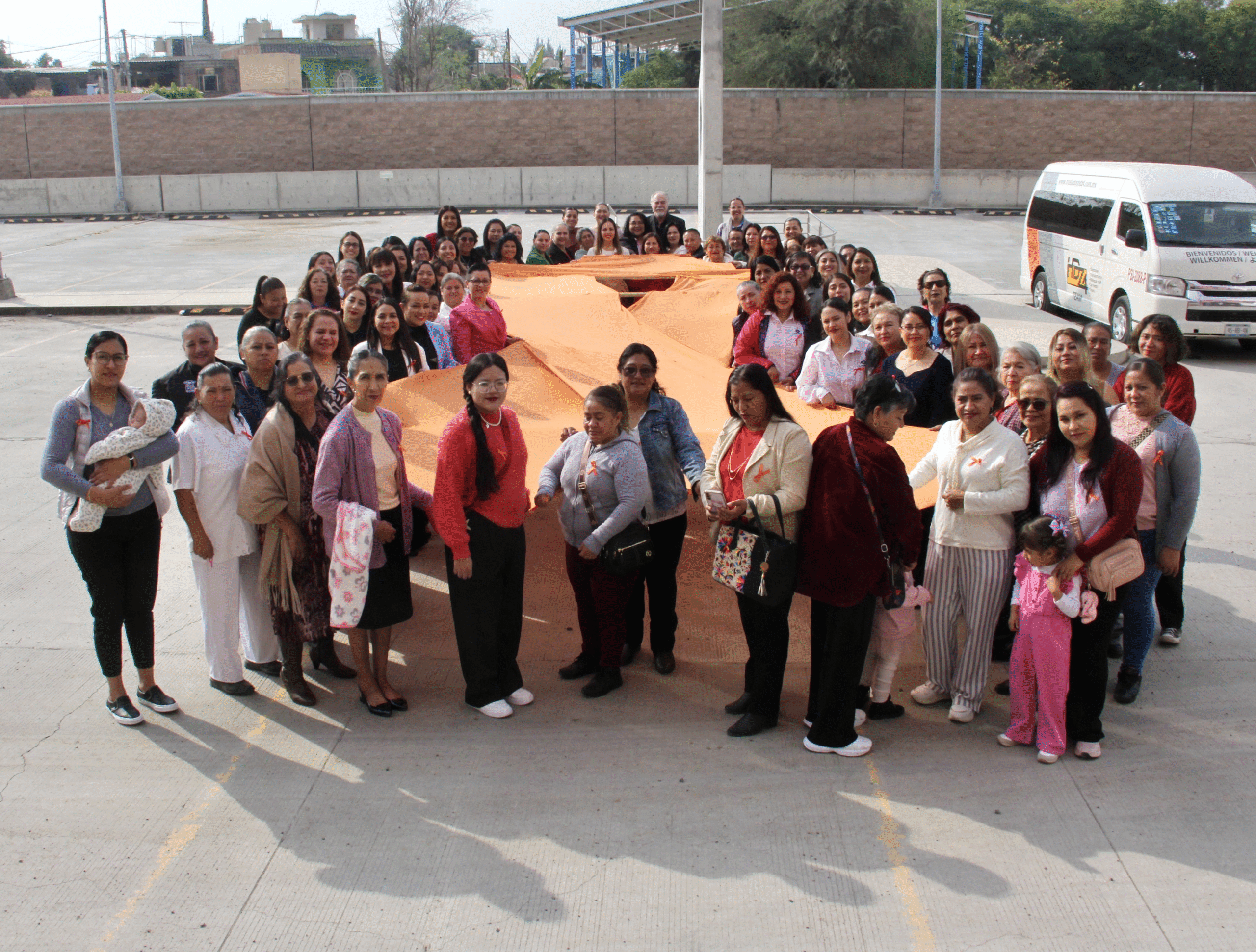 Al final del evento, las asistentes formaron de manera simbólica un moño naranja gigante para hacer presente la eliminación de la violencia contra las mujeres y niñas, dejando manifiesta la conmemoración de este día.